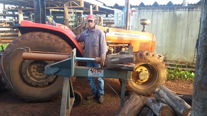 Roque Lunkes, em visita à 4ª Expoleite Missões, que aconteceu de 30 de julho a 2 de agosto de 2015, em Salvador das Missões, conheceu um lascador de lenha mecânico, produzido por uma metalúrgica de Cândido Godói.