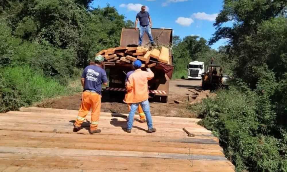 Na segunda-feira (14/04), foi providenciada a reforma do estrado da ponte sobre o arroio Piraju, na RS 165, no trecho entre São Luiz Gonzaga e Serrinha do Rosário (Rolador).