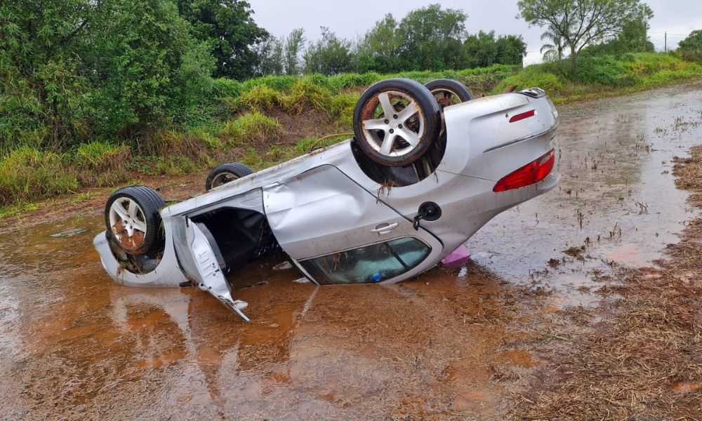 Uma aquaplanagem seguida de capotamento na ERS 168, próximo à Esquina do Ivaí, em São Luiz Gonzaga, foi registrada por volta das 11h30min desta sexta-feira (09/10).