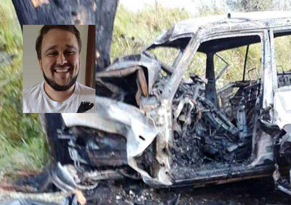 O carro que André Sphor dirigia saiu da pista, bateu em uma árvore e pegou fogo.