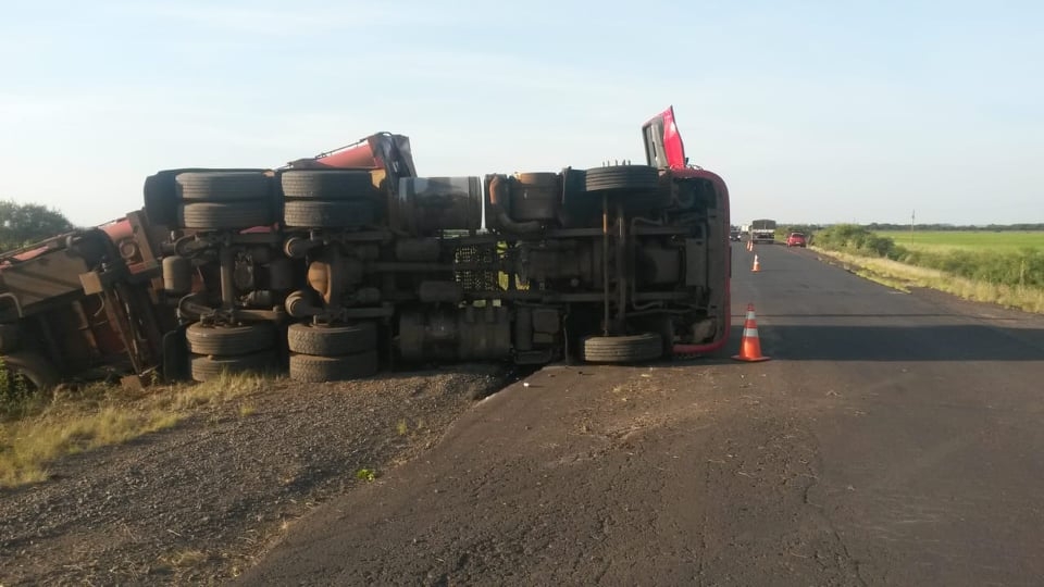 No início da manhã de hoje (11), por volta das 6h30min, a Polícia Rodoviária Federal (PRF) deslocou ao Km 438 da BR 472, já no município de Itaqui, onde uma carreta, com placas de Barra do Guarita (RS), havia tombado, bloqueando parcialmente a rodovia.