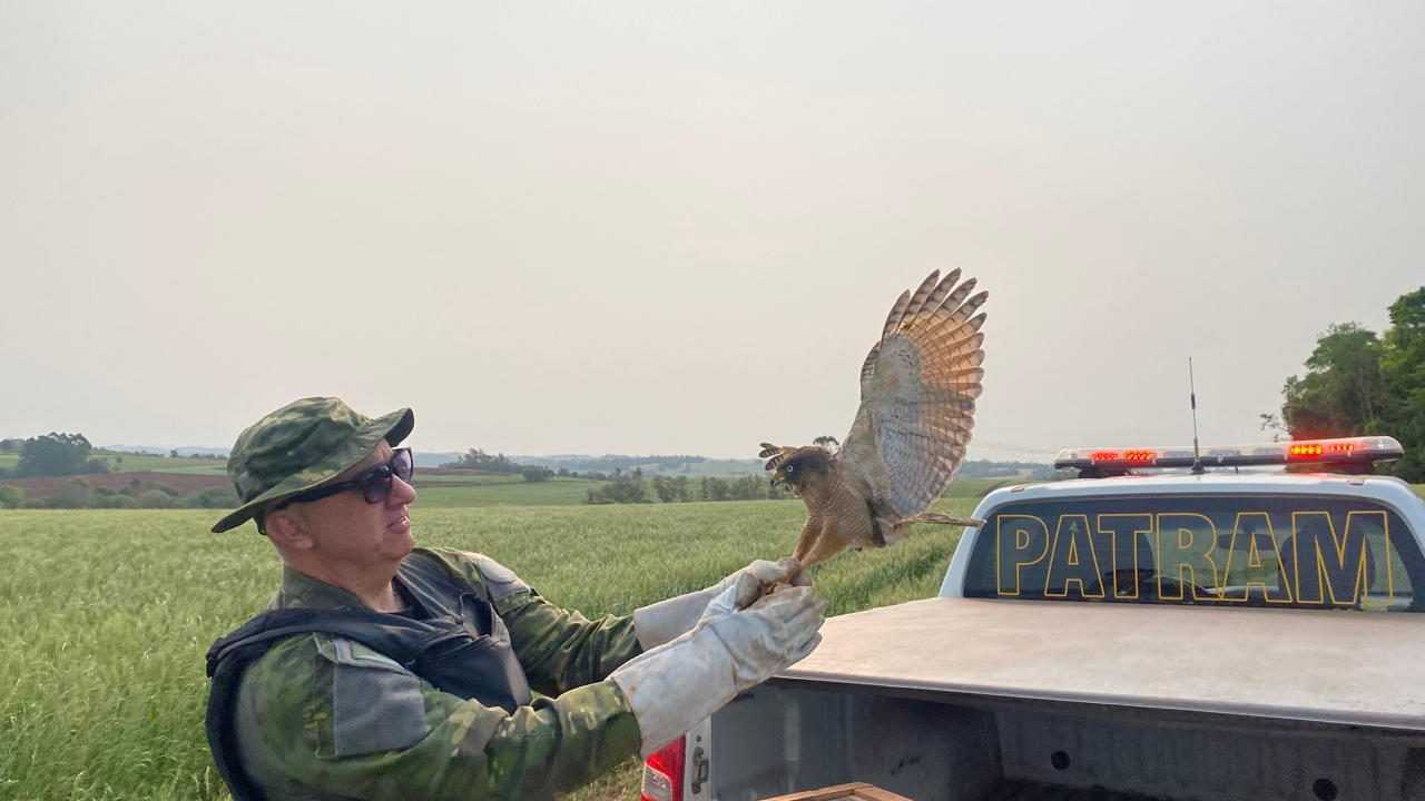 Na tarde de terça-feira (1º/10), uma equipe da Patram (Patrulha Ambiental da Brigada Militar), composta pelos policiais militares Magni e Moreira, compareceu ao campus da URI para buscar o Gavião-carijó e realizar sua soltura na natureza. A ação reforça a colaboração contínua entre a universidade e a Patram de Santo Ângelo.