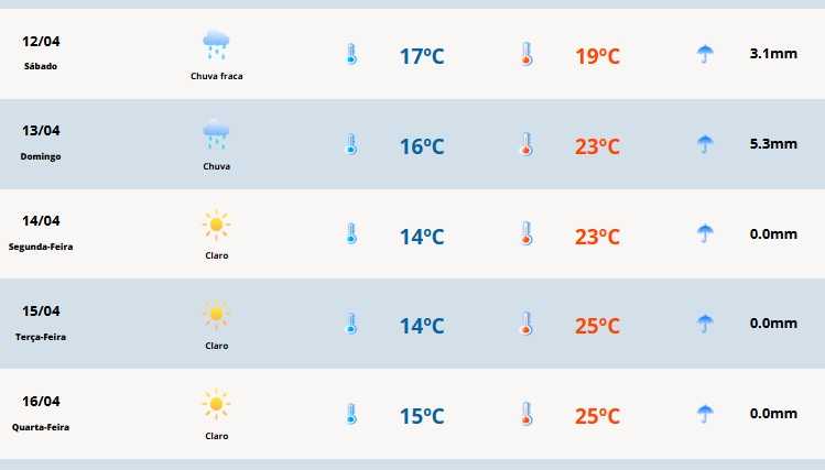 Em Cerro Largo a temperatura terá mínima de 17ºC e máxima de 19ºC.