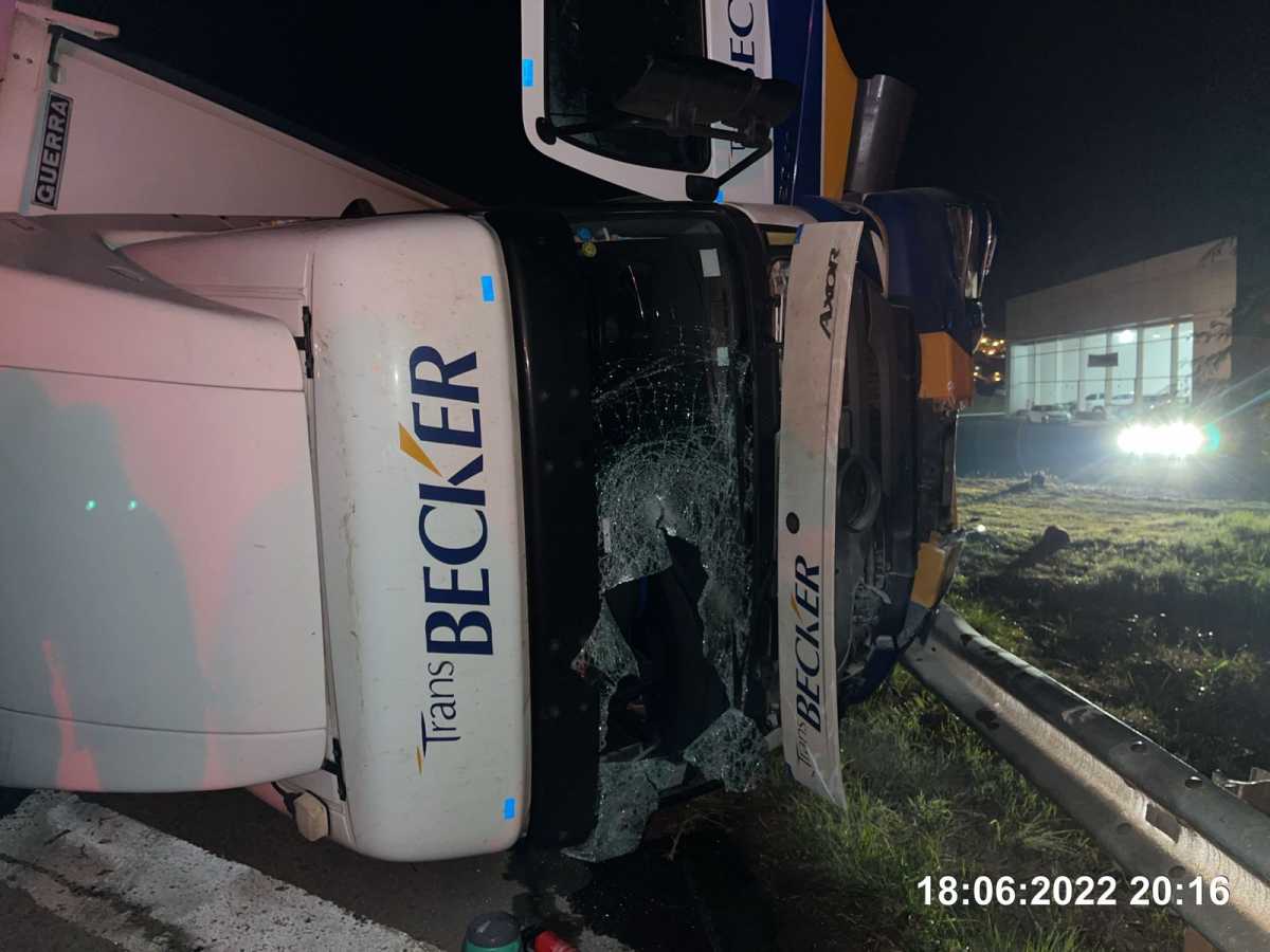 O motorista da carreta que viajava com a esposa, sofreu ferimentos leves e foi levado para atendimento e avaliação médica por socorristas do SAMU.