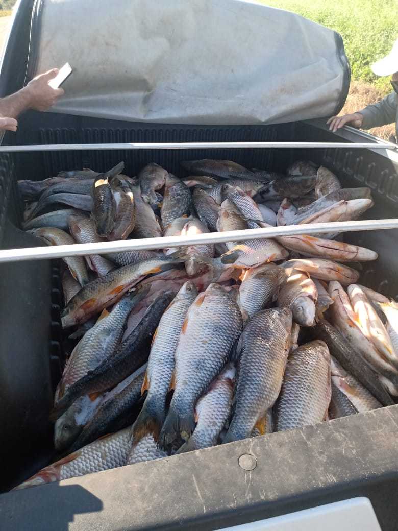 O condutor foi identificado e durante a revista veicular foram localizados na carroceria do veículo 150 quilos de peixes, das espécies Piava e Pati.