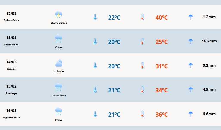 Em Cerro Largo, as temperaturas variam entre 22°C e 40°C.