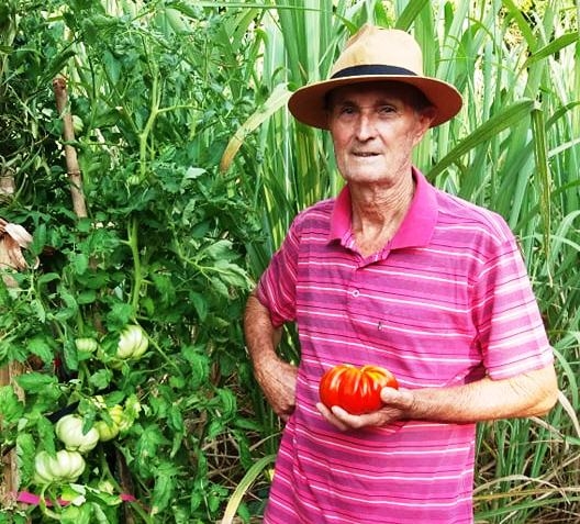 Seu Harri plantou cerca de 120 pés de tomate, a partir de sementes vindas do Mato Grosso, e se surpreendeu com a produtividade, logo em seu primeiro ano de cultivo. "Acabamos plantando tarde os tomates, pois não tínhamos sementes", disse.