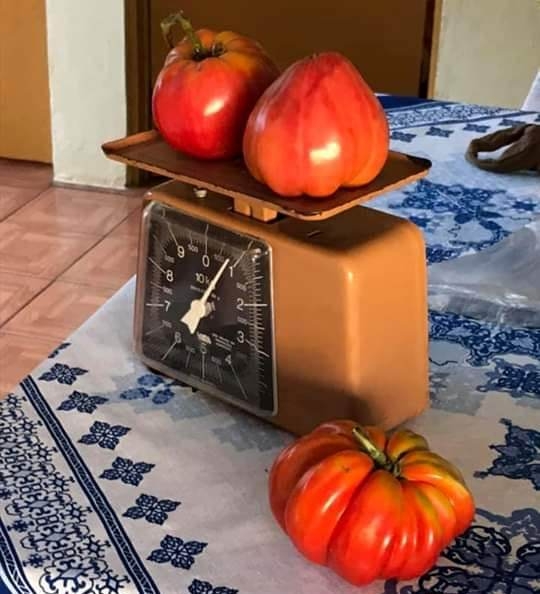 Mas os primeiros tomates colhidos impressionaram pelo tamanho. Vários deles com quase meio quilo.