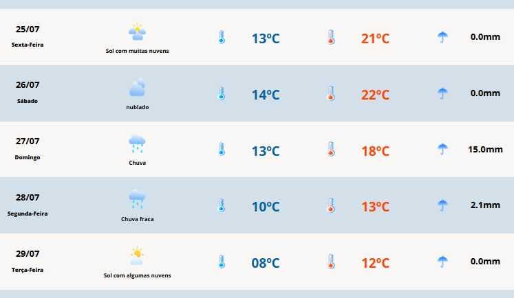 Em Cerro Largo, as marcas variam entre 13ºC e 21ºC.