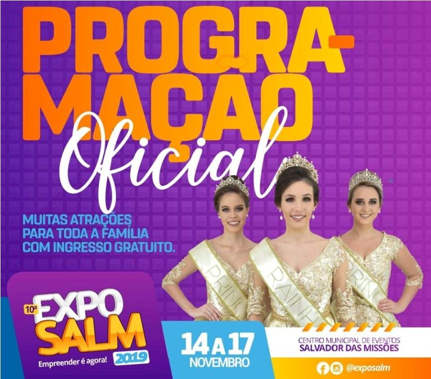 O Centro Municipal de Eventos de Salvador das Missões sedia, de 14 a 17 de novembro, a 10ª ExpoSalm 2019, cuja lema é "Empreender é agora!"