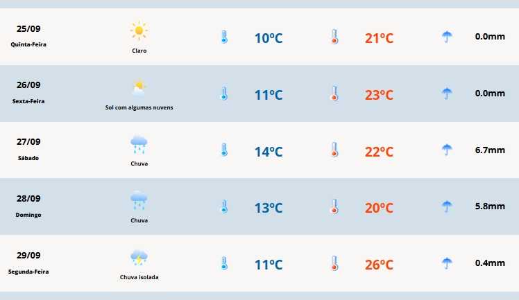 O tempo aberto e muito seco na madrugada traz um amanhecer frio para o fim de setembro com geada em pontos da Campanha e de localidades de maior altitude da Metade Norte. A tarde será de temperatura agradável.