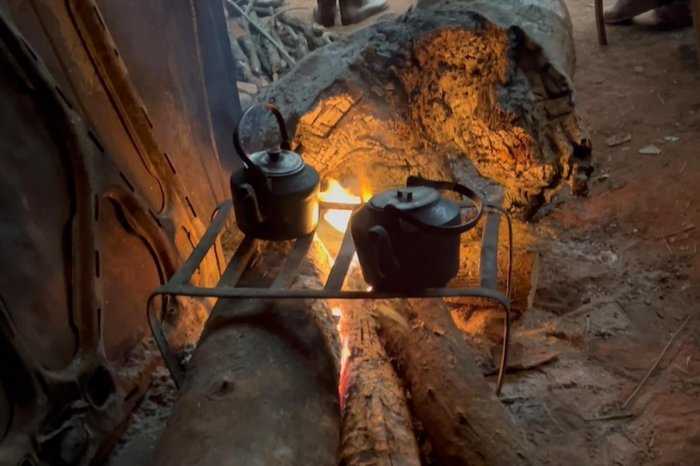 Para manter o fogo aceso são necessários cerca de 15 metros quadrados de lenha por ano. O trabalho vai desde lascar lenha, guardar e monitorar para que o fogo jamais apague.
