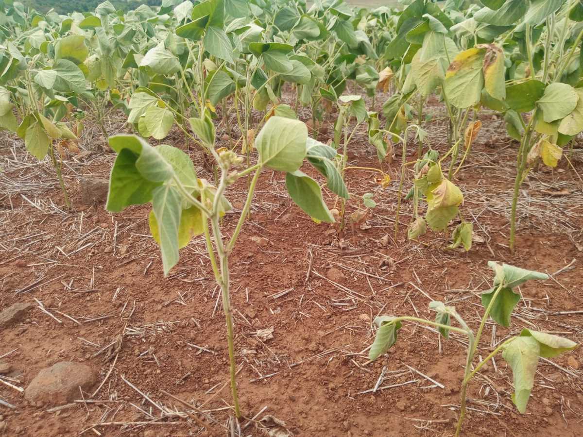 Na região Noroeste/Santa Rosa, o plantio praticamente não avançou durante o período, com exceção de algumas comunidades onde as precipitações oportunizaram a semeadura. Na região, 33% das lavouras estão na fase vegetativa e 55% na reprodutiva. A condição do clima, durante a semana, acentuou os sinais de estresse hídrico na cultura, causando o murchamento da parte aérea das plantas várias horas do dia. De modo geral, observa-se a presença de populações significativas de tripes, inseto raspador-sugador de folhas, que contribui para a perda de água das plantas, acentuando o murchamento. Também são observadas manchas foliares de forma recorrente. Diante do acentuado stress hídrico que se encontra a cultura, os produtores vêm suspendendo os tratamentos fitossanitários, em especial de fungicidas, que, associados às altas temperaturas e à baixa umidade relativa do ar, deixam a cultura com maior sensibilidade à ocorrência de fitotoxicidade.