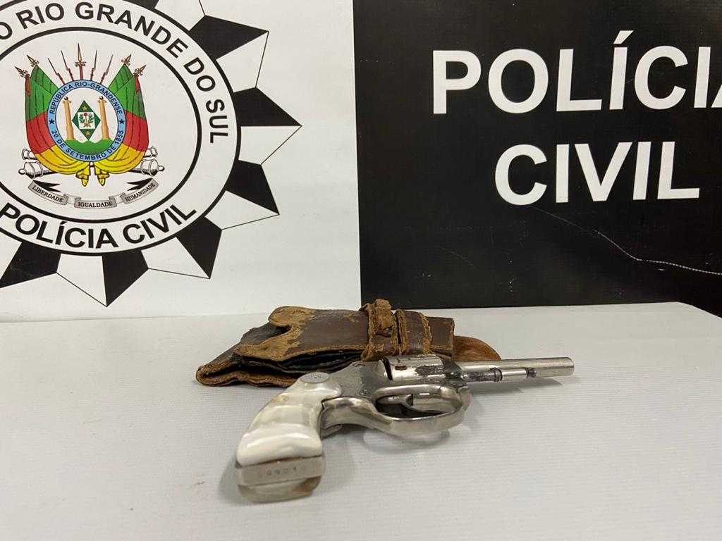 Acionada, a Polícia Civil cumpriu mandado de busca e apreendeu com o homem um revólver calibre 22.