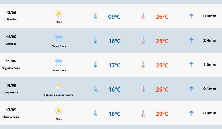 Em Cerro Largo a temperatura vai oscilar entre 9°C e 26°C.