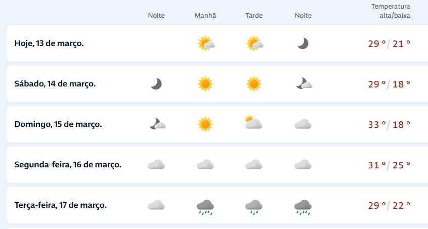 Em Cerro Largo, nesta sexta-feira as temperaturas variam entre 21°C e 29°C.