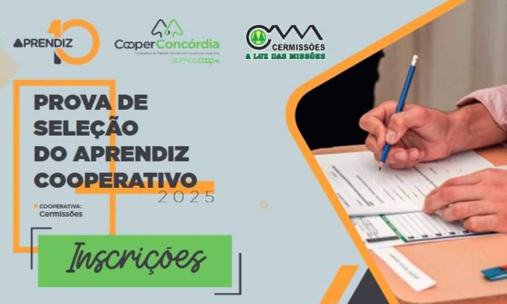 A Cermissões está com inscrições abertas para a nova turma do Programa Jovem Aprendiz Cooperativo, oferecendo 16 vagas para jovens de 14 a 24 anos.