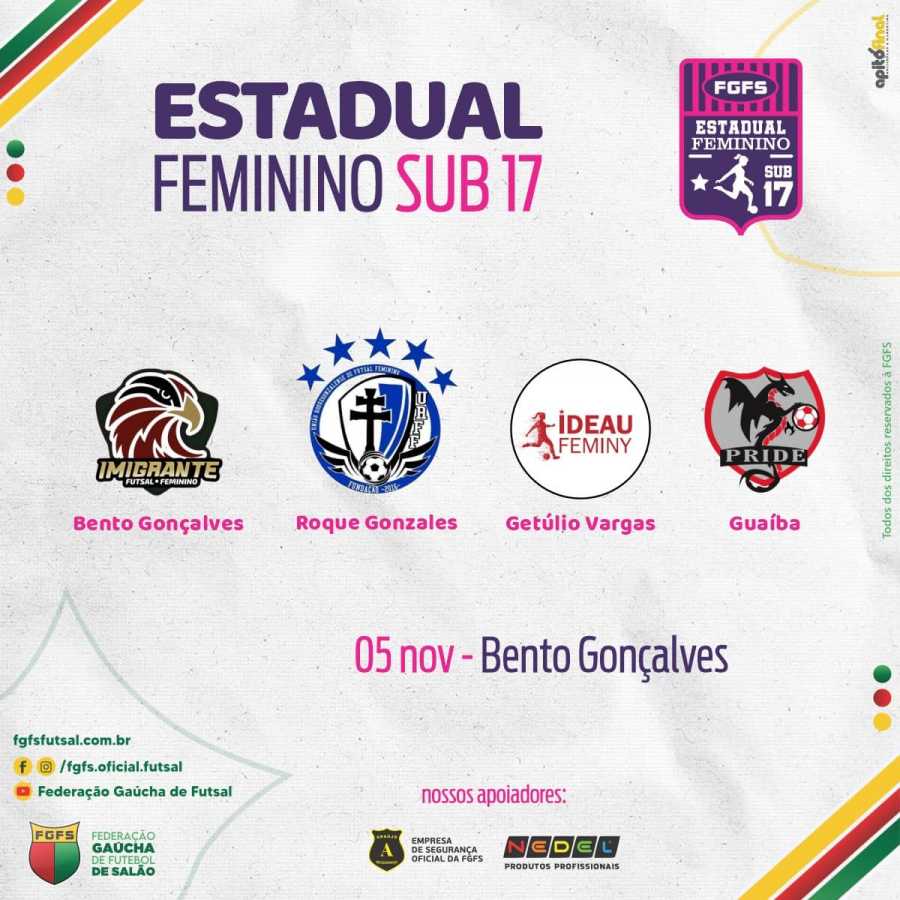 No próximo sábado (5/11), a cidade de Bento Gonçalves será o palco do Estadual de Futsal Feminino Sub 17, promovido pela Federação Gaúcha de Futsal (FGFS).