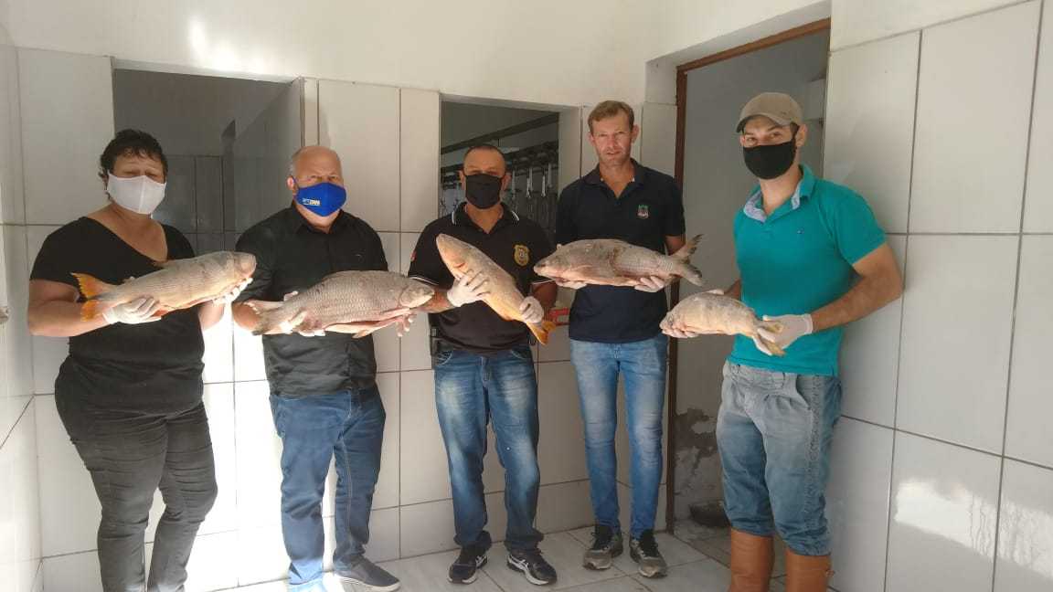 Entre as espécies estão Dourados e Piavas. Os peixes serão repassados para mais de 50 famílias de baixa renda do município.
