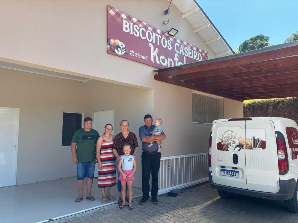 Cenilda Affeldt, empreendedora de Camaquã, é produtora rural e proprietária de uma agroindústria de sucesso na cidade. A Biscoitos Konfel conquistou o paladar dos consumidores e hoje seus produtos estão presentes em mais de 80 mercados da região Centro Sul, além de feiras do produtor, merenda escolar e eventos. Cenilda se orgulha de sua cozinha industrial equipada com fornos e máquinas de última geração. A ideia, nascida de uma necessidade de cuidar da filha caçula em casa, potencializou a geração de renda de sua família, que atualmente se divide entre a pequena agroindústria e a lavoura em sua propriedade. "Sou muito grata a todos, tudo é um trabalho de equipe e a Emater sempre esteve presente na nossa trajetória apoiando, orientando nosso desenvolvimento e assessorando em nossas demandas", explica Cenilda.