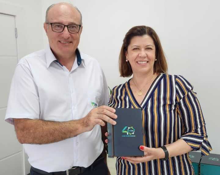 Na segunda-feira (17/03), o presidente da Sicoob Oestecredi, Vanderli Soprano, recebeu a diretora Maria Luisa, do Sicoob Central SC/RS, para um encontro estratégico na cidade de Palmitos (SC).