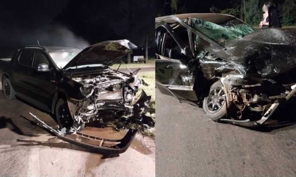 Uma caminhonete Ford Ranger de Tuparendi e VW Golf de Santa Rosa, colidiram frontalmente no trevo do entroncamento das rodovias RS 344 com a RSC 472, na saída para Tuparendi.