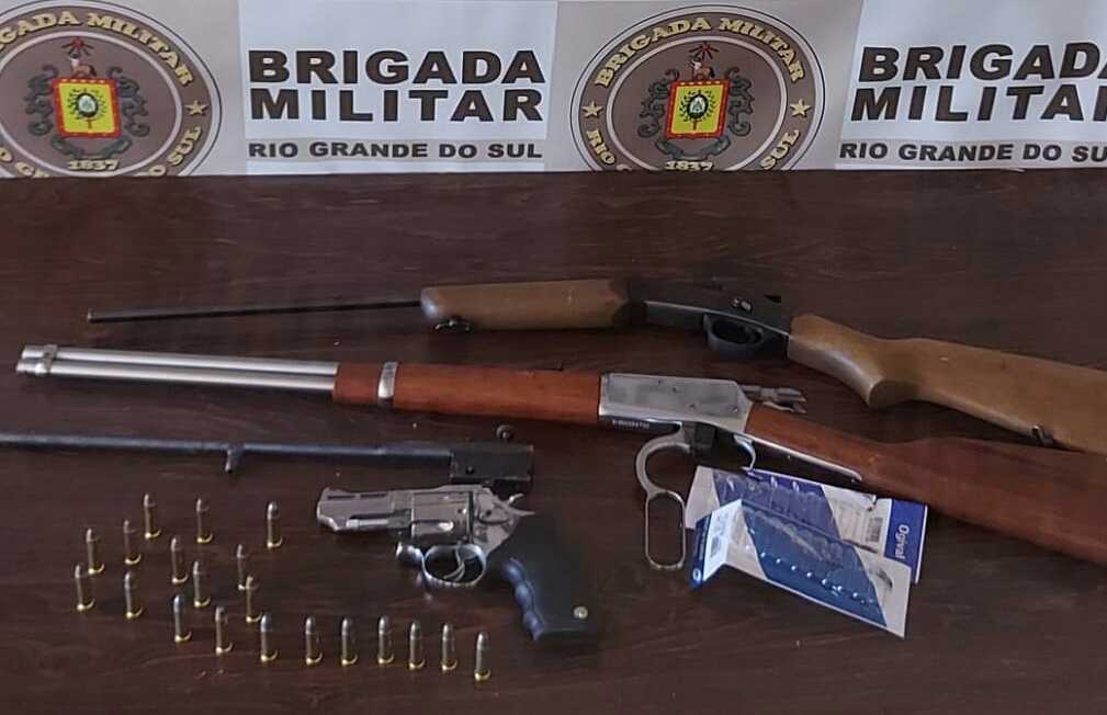 Neste domingo (14/2), por volta do meio-dia, a Brigada Militar de Cerro Largo recebeu uma denúncia - via 190 - de que um cidadão, condutor de uma caminhonete Hilux prata, havia entrado em um bar e teria se exibido para os demais com uma arma "cromada" (um revólver calibre 38, inox).