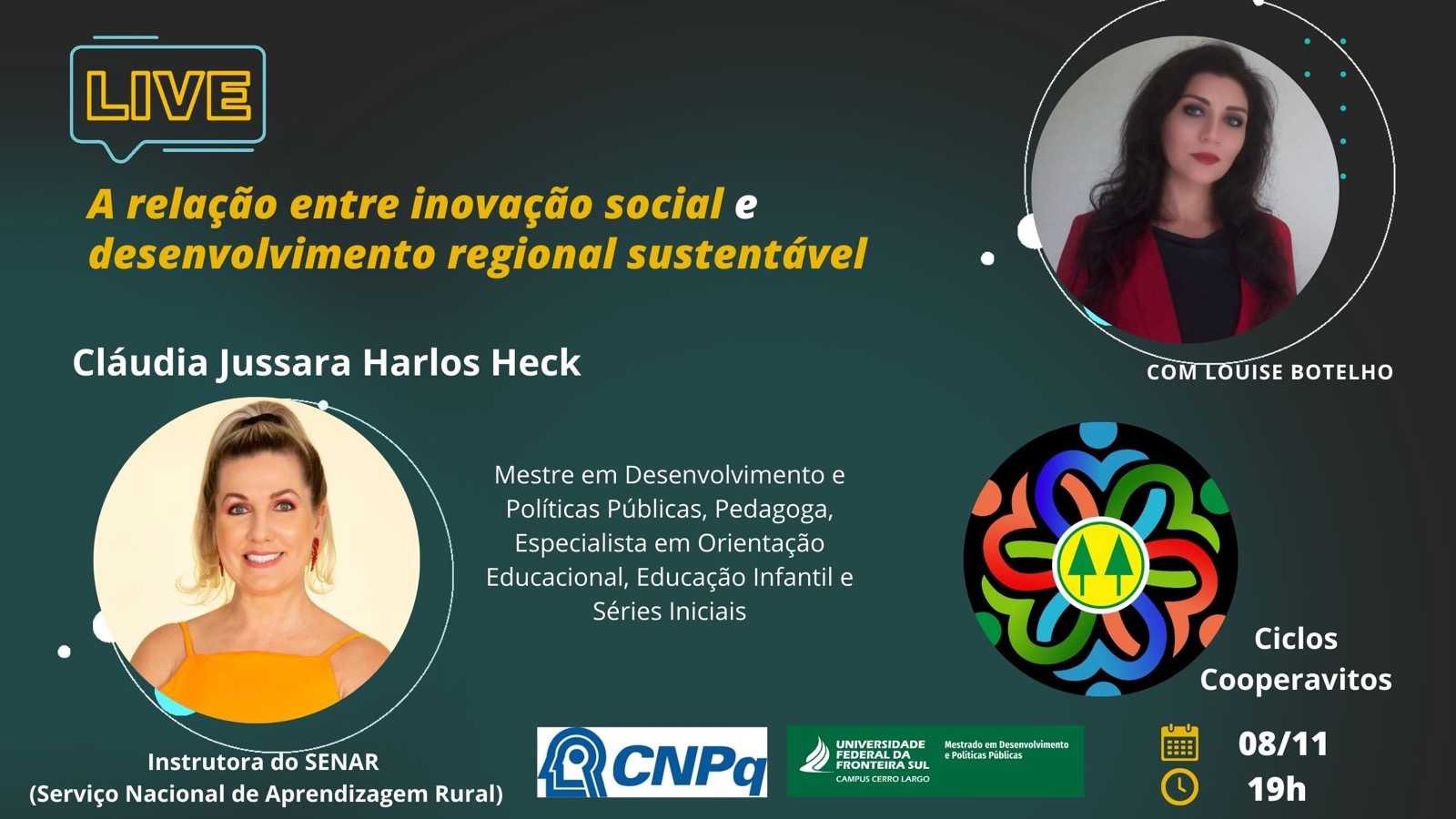 O projeto Ciclos Cooperativos da Universidade Federal da Fronteira Sul (UFFS), campus Cerro Largo, convida a comunidade acadêmica e comunidade em geral para participarem do webinário A relação entre inovação social e desenvolvimento regional sustentável.