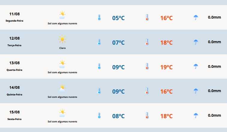 Em Cerro Largo, a mínima será de 6ºC e a máxima de 16ºC.