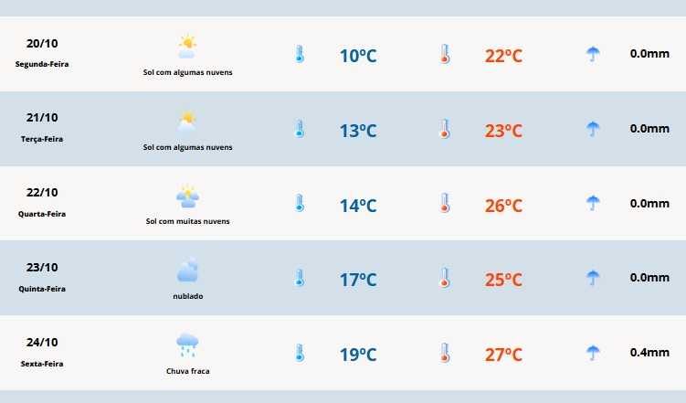 Em Cerro Largo a temperatura vai oscilar entre 10°C e 22°C.