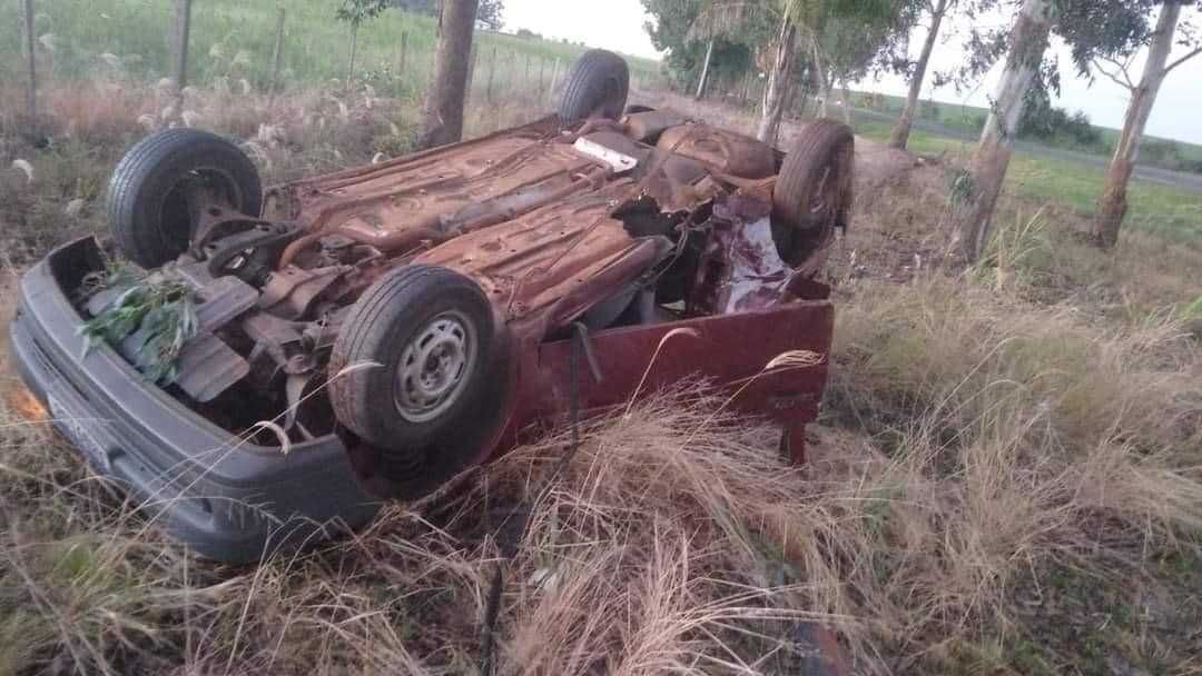 Imagens de internautas mostram que o veículo se chocou contra um eucalipto e acabou capotando. Segundo informações preliminares, o motorista passa bem.