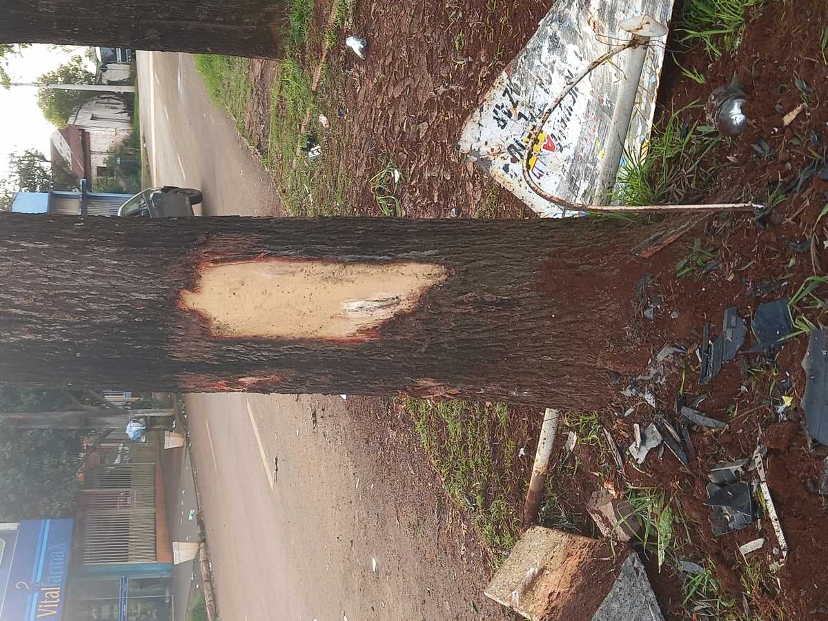 Com a colisão, chegou a "descascar" a árvore, enquanto o C4 teve danos muito grandes, inclusive com o acionamento dos air bags.