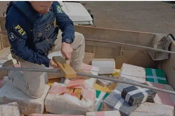 Ao vistoriarem a carga, os policiais encontraram diversos fardos juntos com o milho. Eram 4.968 quilos de maconha e 11´quilos de skunk, 13 quilos menos que a maior apreensão do ano da PRF no RS: 4.992 quilos de maconha apreendida no mês de junho em Sarandi dentro de uma carreta que carregava óleo vegetal.