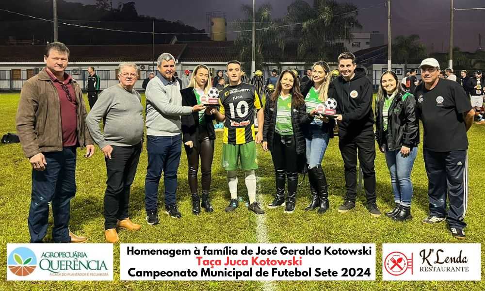 O Campeonato Municipal de Futebol Sete 2024 homenageou o saudoso desportista e empresário cerro-larguense José Geraldo Kotowski, carinhosamente chamado por amigos, conhecidos e clientes como "Juquinha".