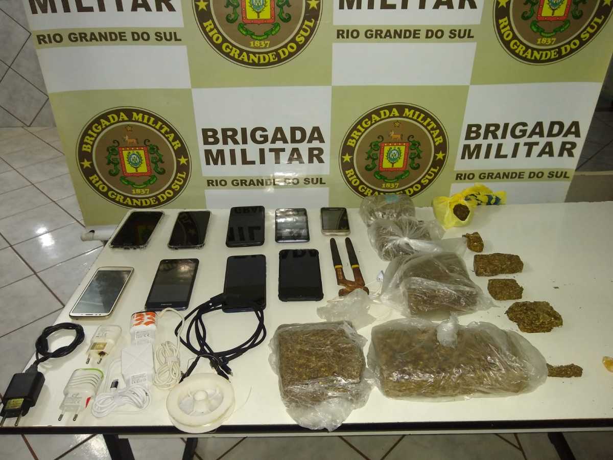 O homem tentou arremessar duas sacolas de plástico com celulares e drogas para dentro do pátio, mas foi impedido por policiais da guarda externa e guarnições do policiamento que se encontravam no local.