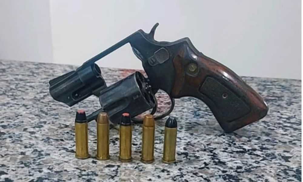 Os Policiais Militares deslocaram ao local, abordaram um homem, que possuía um revólver calibre 38 com cinco munições intactas.