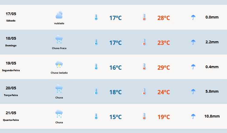 Em Cerro Largo, a temperatura vai variar entre 17ºC e 28ºC.