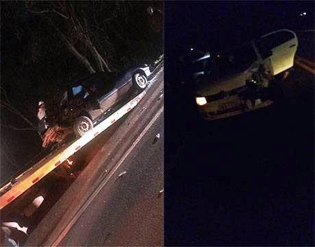 Os veículos tiveram danos materiais de elevada monta.
