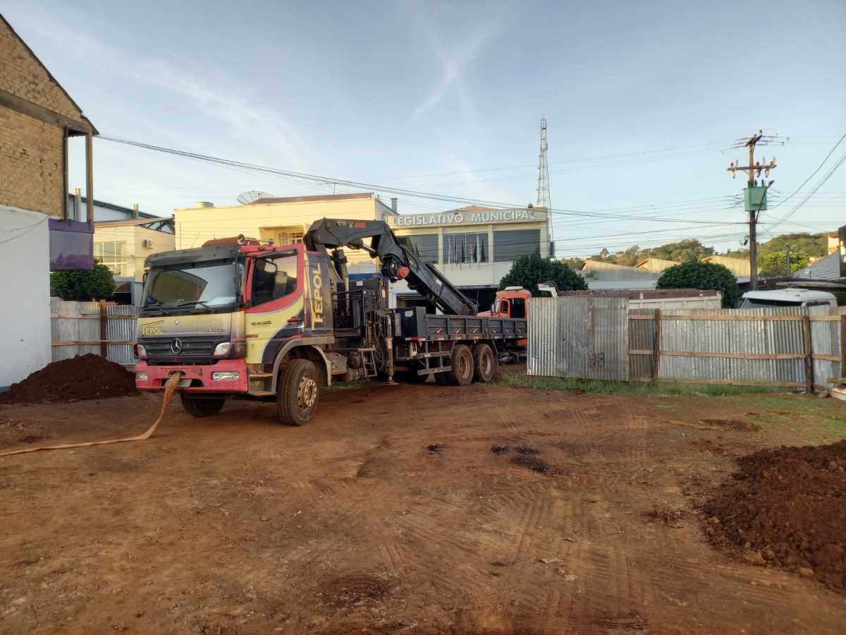 Nesta quinta-feira (13/6), teve início a construção da nova unidade das Lojas Becker em Cerro Largo, com uma empresa de pré-moldados em concreto começando a instalação de pilares do futuro prédio.