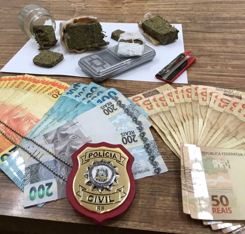 Na ocasião foi apreendida maconha suficiente para produção de 350 porções para venda. Também foi apreendido um automóvel utilizado para o tráfico, uma balança de precisão e dinheiro.