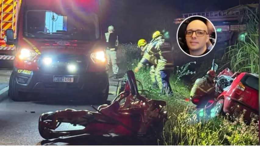 Com a batida, o Fiat Palio caiu em um barranco alagado. O policial penal ficou preso às ferragens e morreu na hora. O corpo foi retirado pelos bombeiros após o trabalho de desencarceramento. A perícia foi acionada para investigar as circunstâncias do acidente.