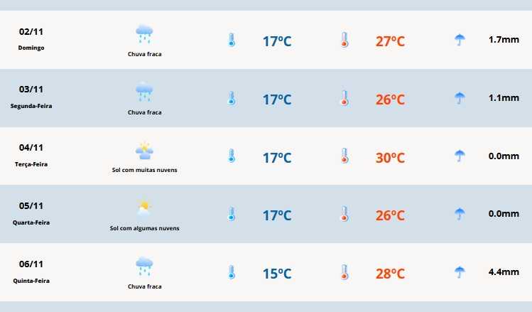 Com mínimas de 17º e máximas de 26º, a temperatura também será boa em Cerro Largo.