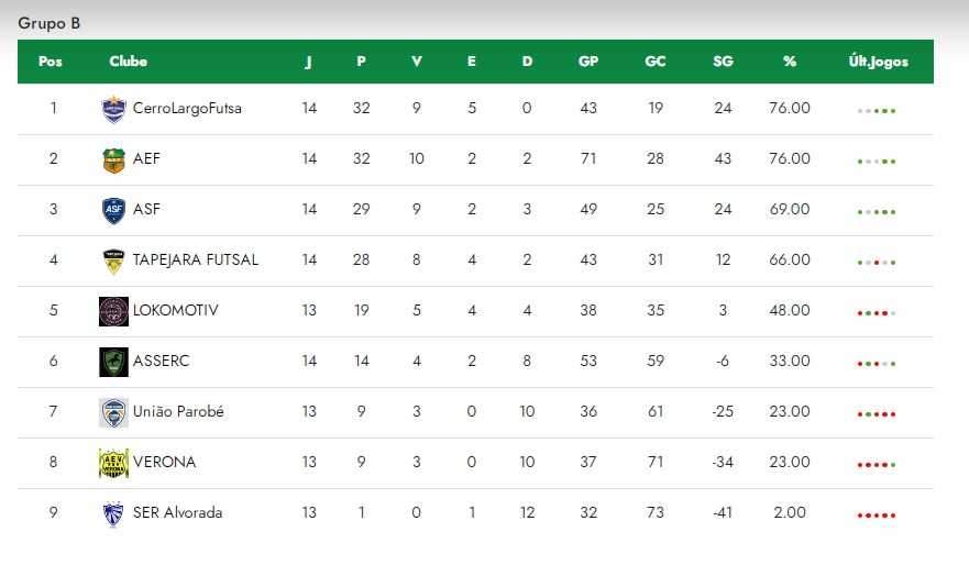 Nessa reta final da fase classificatória, quatro equipes ainda têm chances de encerrar na liderança do Grupo B: Cerro Largo (32 pontos), Entre-Ijuís (32), Serafina Corrêa (29) e Tapejara (28). Confira as partidas dessa semana: