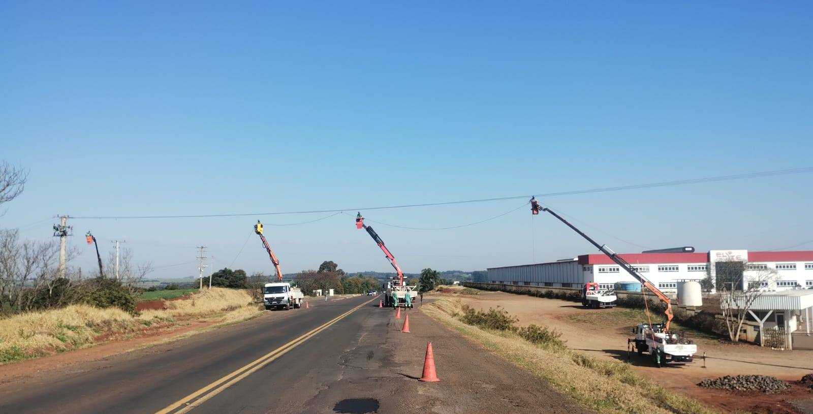 A ação ocorreu durante um desligamento programado, permitindo a execução de uma das etapas mais complexas do projeto: a travessia da BR 285, nas proximidades da empresa Elyte, em Entre-Ijuís.