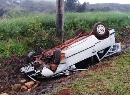 O carro ficou destruído, mas como Altevir usada cinto de segurança, teve apenas escoriações leves.
