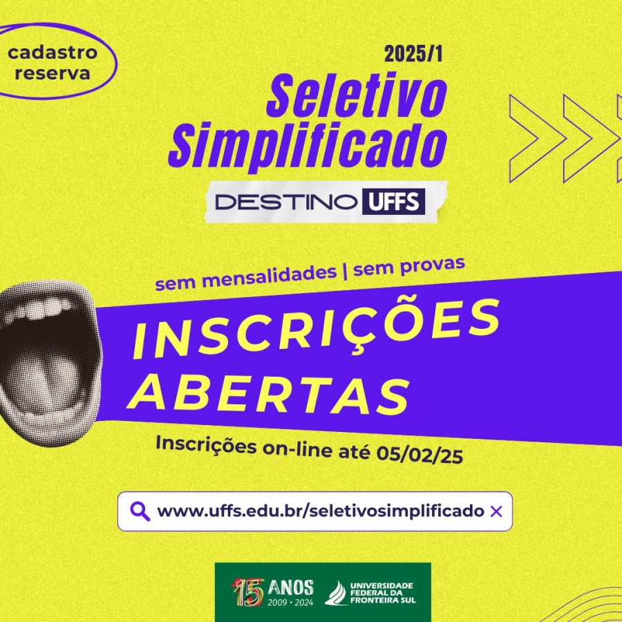 O Processo Seletivo Simplificado 2025.1 da Universidade Federal da Fronteira Sul (UFFS), está com inscrições abertas até o dia 5 de fevereiro de 2025.