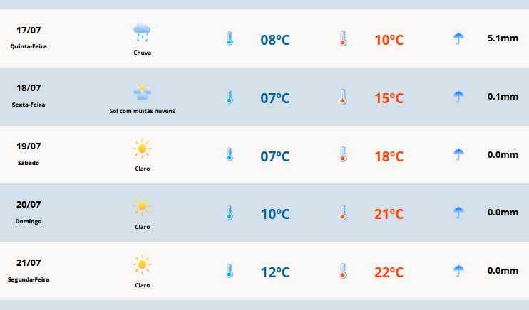 Em Cerro Largo a temperatura vai oscilar entre 8°C e 15°C.
