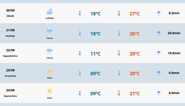 Em Cerro Largo, neste Dia do Gaúcho, a temperatura mínima será de 18°C e a máxima de 27°C.