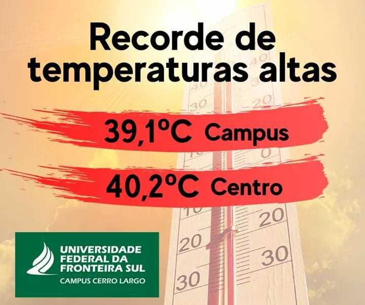 Às 15h29min de ontem, dia 1º de outubro, a estação meteorológica da UFFS, localizada no Campus de Cerro Largo, registrou a temperatura de 39,1ºC.