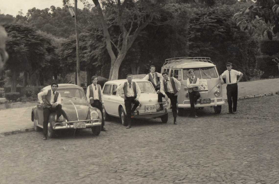 Na foto aparecem os músicos João Máximo de Oliveira, Vicente Rigodanzo, Rudi Hoff, Egílio Tonin, Alfredo Schacht, Juquinha Dahmer e o motorista do conjunto, Egon Bracht.
